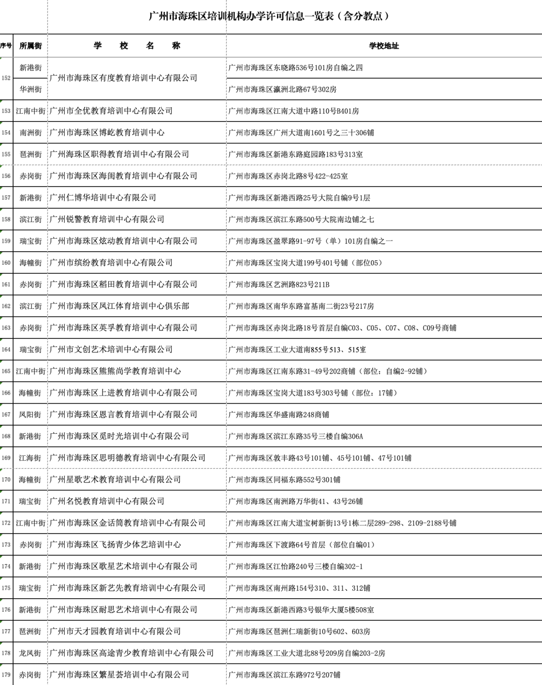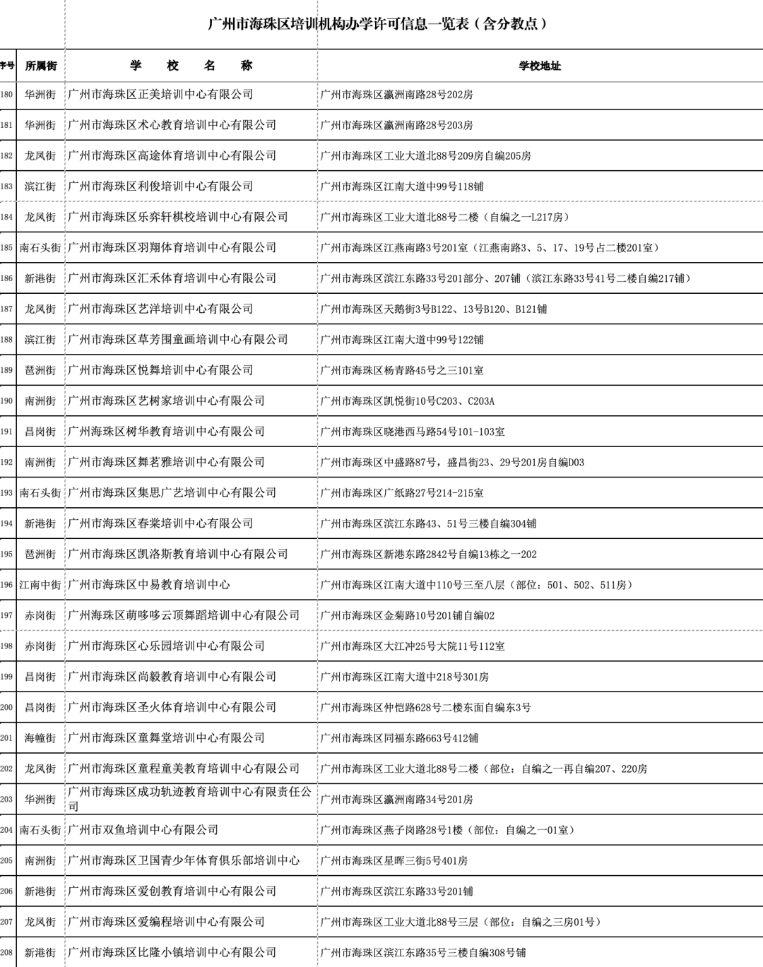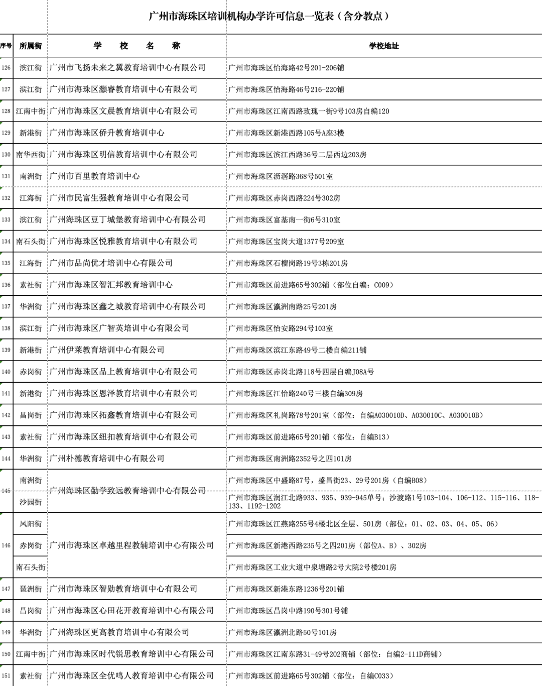 1月18日,广州市海珠区公布广州市海珠区证照齐全的校外培训机构名单(数据更新至2024年1月10日)。