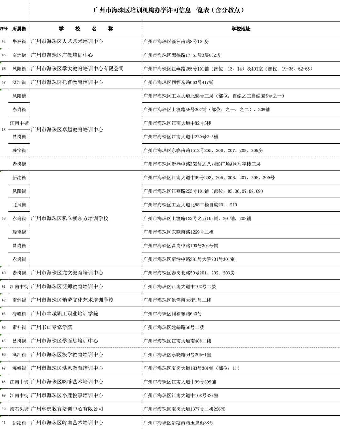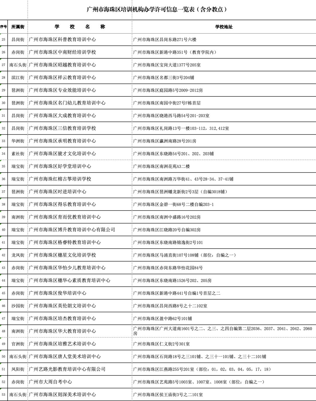 海珠区校外培训机构持证名单如下: