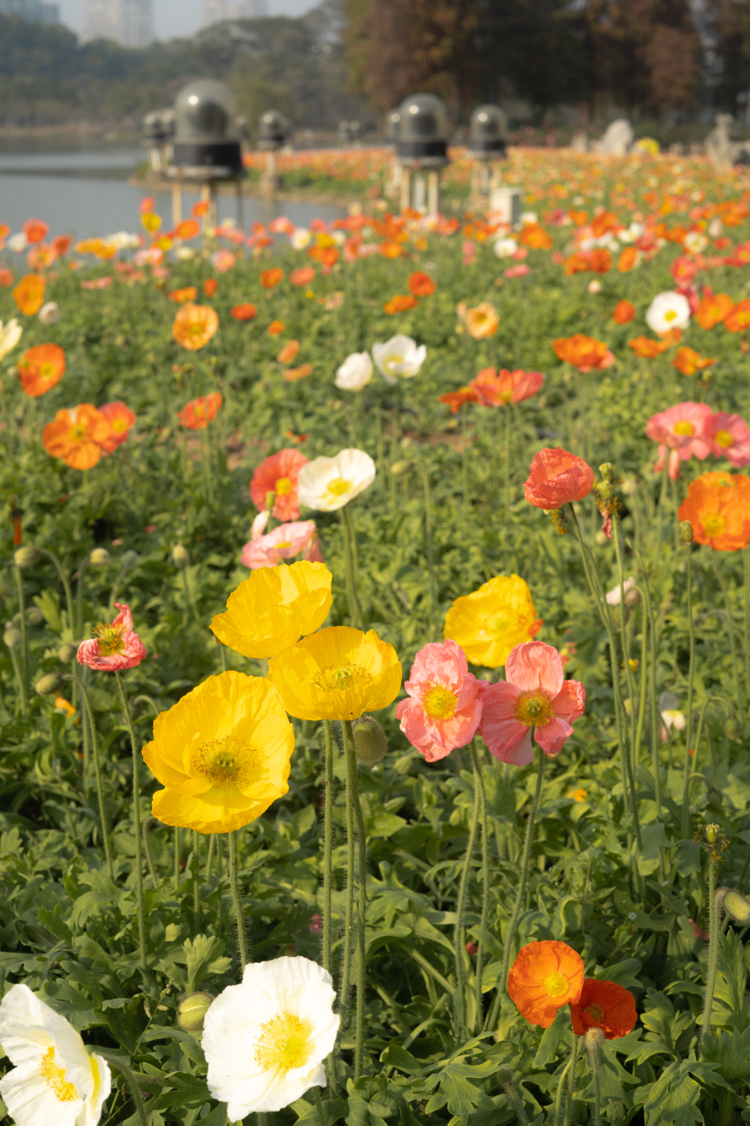 缘何虞美人值得一赏?据悉,虞美人花色彩丰富,开花时,花瓣质薄如绫,姿态妩媚灵动,虽无风亦似自摇,风动时更是飘然欲飞,十分漂亮。在顺峰山公园,你可以观赏到成片盛开的虞美人花田,有如莫奈笔下的画作,精致、典雅。另外,一边是碧湖一边是色彩缤纷的花海,也足够让人赏心悦目,沉醉其中。