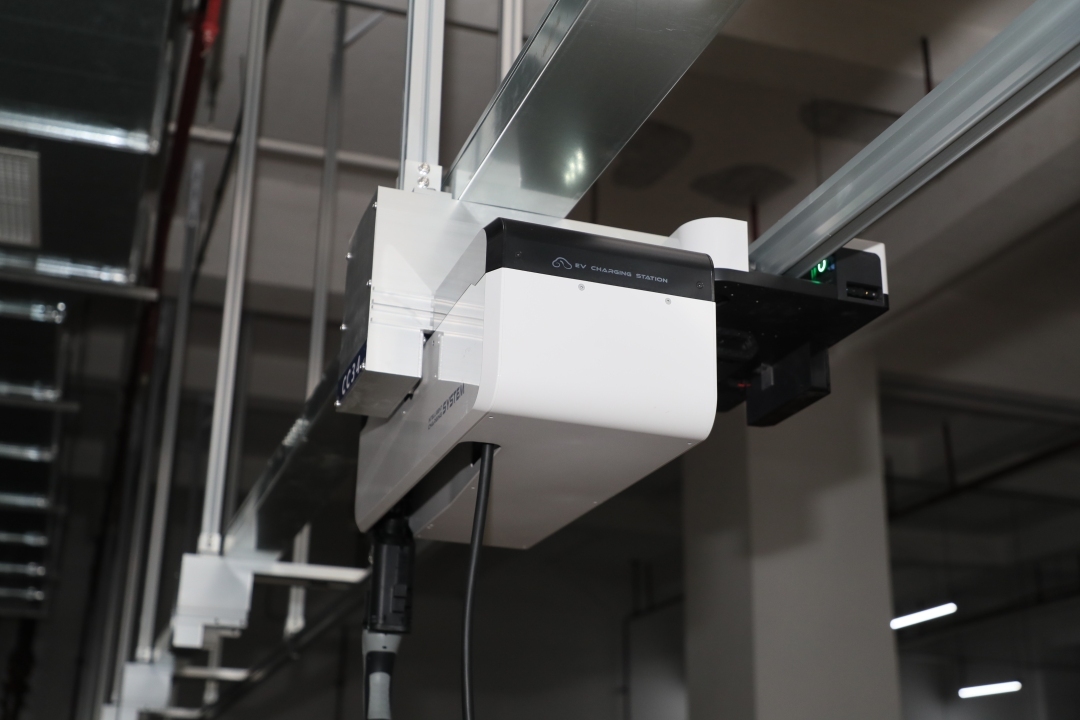 据悉,该场站利用导轨移动式共享柔性充电机器人,改变了传统“一对一”的固定充电方式。通过人工智能技术与智能调度算法,共享充电机器人实现了“桩找车”,更好地匹配车主充电需求,也大幅提高了车位和充电桩的利用效率。
