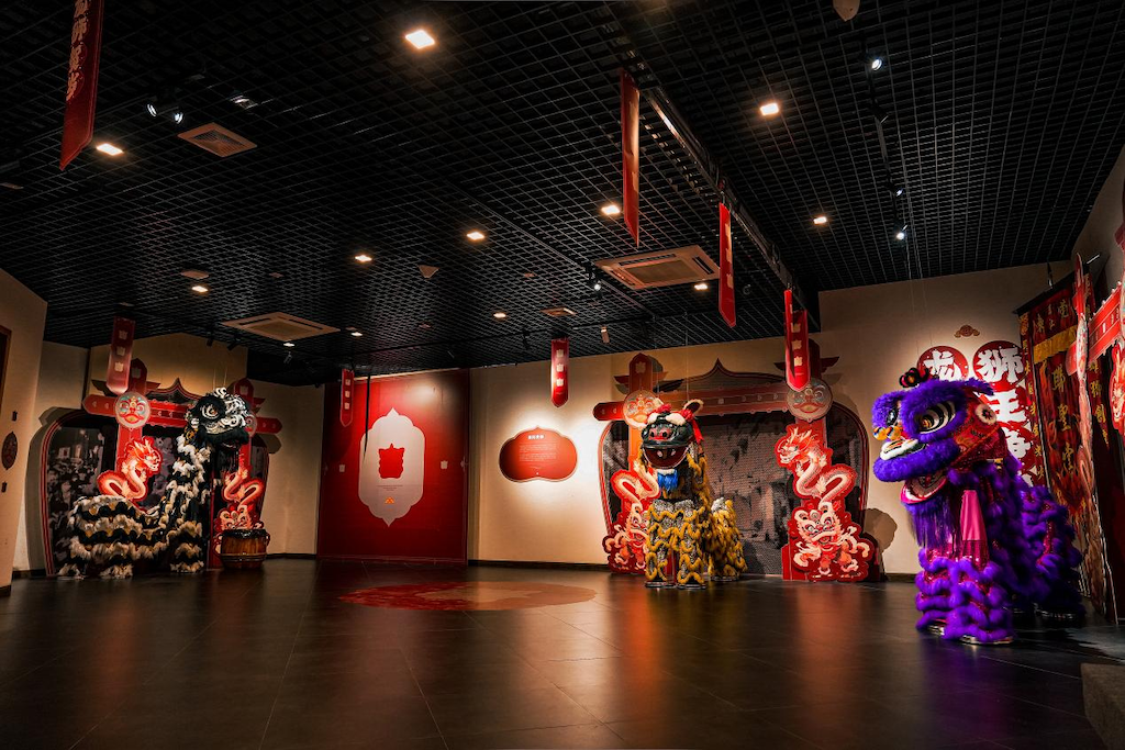 此外,作为东莞唯一的“中国历史文化名镇”,石龙镇拥有深厚的历史文化底蕴,目前有10项市级以上非遗代表性项目,其中包括“石龙醒狮头制作技艺”“石龙麒麟制作技艺” “石龙新昌鼓制作技艺”等。为了进一步让中华优秀传统文化“活起来”,让更多年轻人了解和走近、保护和传承非遗,本次展览还集聚了新昌鼓、麒麟、醒狮头等非遗展品。馆内还布置有五头醒狮“飞舞”在中庭,寓意“五福临门”。在这里,游客可以摸狮头、赏非遗、集五福、敲锣打鼓,在观赏中领略中华优秀传统文化魅力。