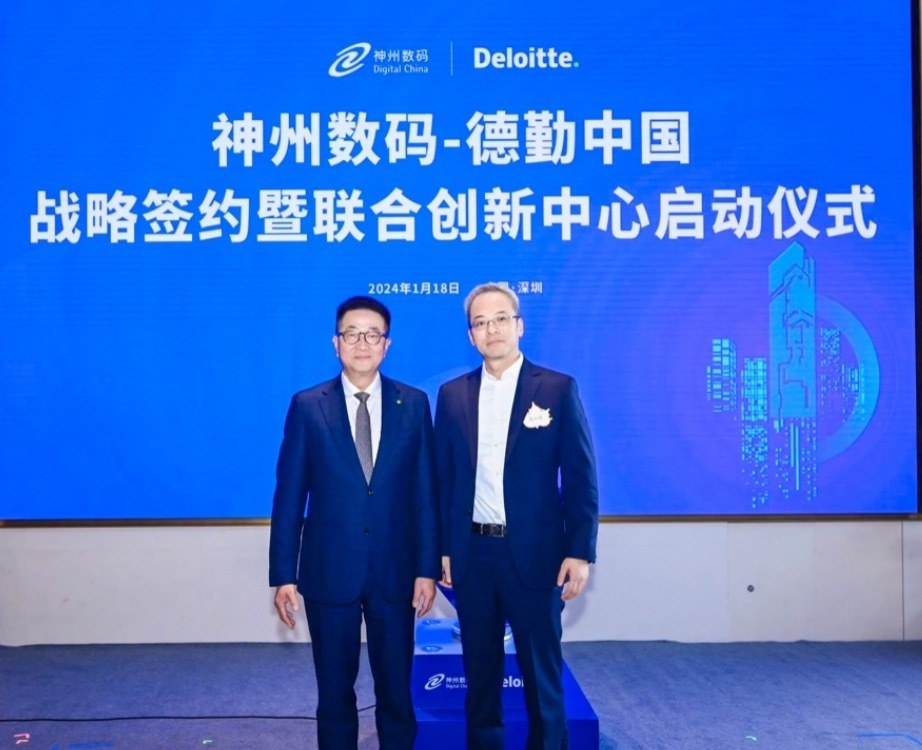 (从左至右分别为:德勤中国管理咨询首席执行官戴耀华,神州数码总裁王冰峰。)