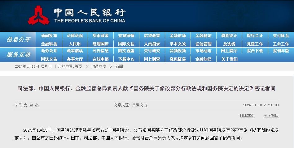 18日,《国务院关于修改部分行政法规和国务院决定的决定》公布,司法部、中国人民银行、金融监管总局负责人就此回答了有关问题,其中介绍了《中国人民银行货币政策委员会条例》的修改情况。