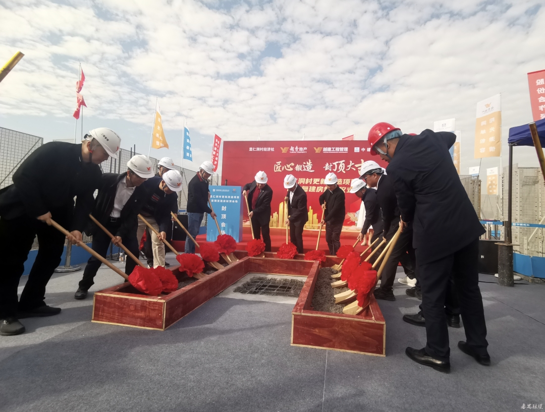 里仁洞村旧改项目首栋复建房封顶(王汉文摄)