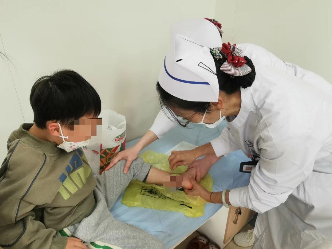 “赵婆婆送来医院时已经烫伤一周了。”外科护士长罗润妹回忆说,赵婆婆为右大腿大面积的Ⅱ度烫伤,烫伤面积约10cm×10cm,烫伤部位周围皮肤潮红并有小水泡,中间皮肤有破损,伤口基底呈粉红色,有中量黄色渗液。后来赵婆婆经过红外线照射,外涂烧伤油,并使用藻酸盐、泡沫敷料等湿性敷料换药治疗后,大约过了三周,烫伤的皮肤就全部愈合了。”因为老人家多有营养不良的状况,三周愈合算是比较快的。”