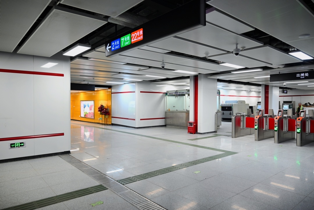 该通道是广佛首个实现四线站内付费区换乘的通道,启用后佛山地铁2号线广州南站实现与广州地铁2号线、7号线、22号线广州南站站内换乘,无需再出站经地面进站进行换乘,大幅提升地铁出行效率,相比之前的出站地面换乘节约近4分钟。1月20日,广州日报记者提前探营,体验这条融合广佛两地轨道设计于一体的新“牵手”通道。