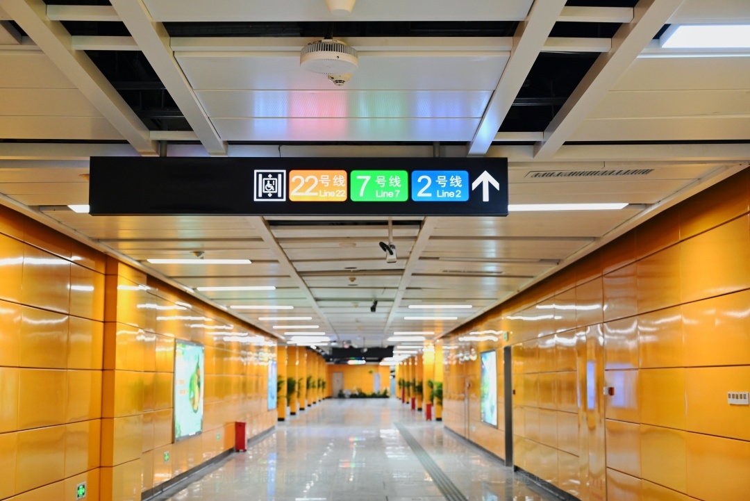 佛山地铁2号线是广东省佛山市第二条地铁线路,于2021年12月28日开通运营一期工程,为东西向市域骨干线,起于南庄站,途经佛山禅城、南海、顺德区以及广州市番禺区,止于广州南站。佛山地铁2号线广州南站换乘通道位于广州市番禺区广州南站西广场下方,换乘通道结构为地下一层矩形框架结构,全长约150米。该通道启用后,可同时通行约2200人,并实现佛山地铁2号线,广州地铁2号线、7号线、22号线的高效互联互通。