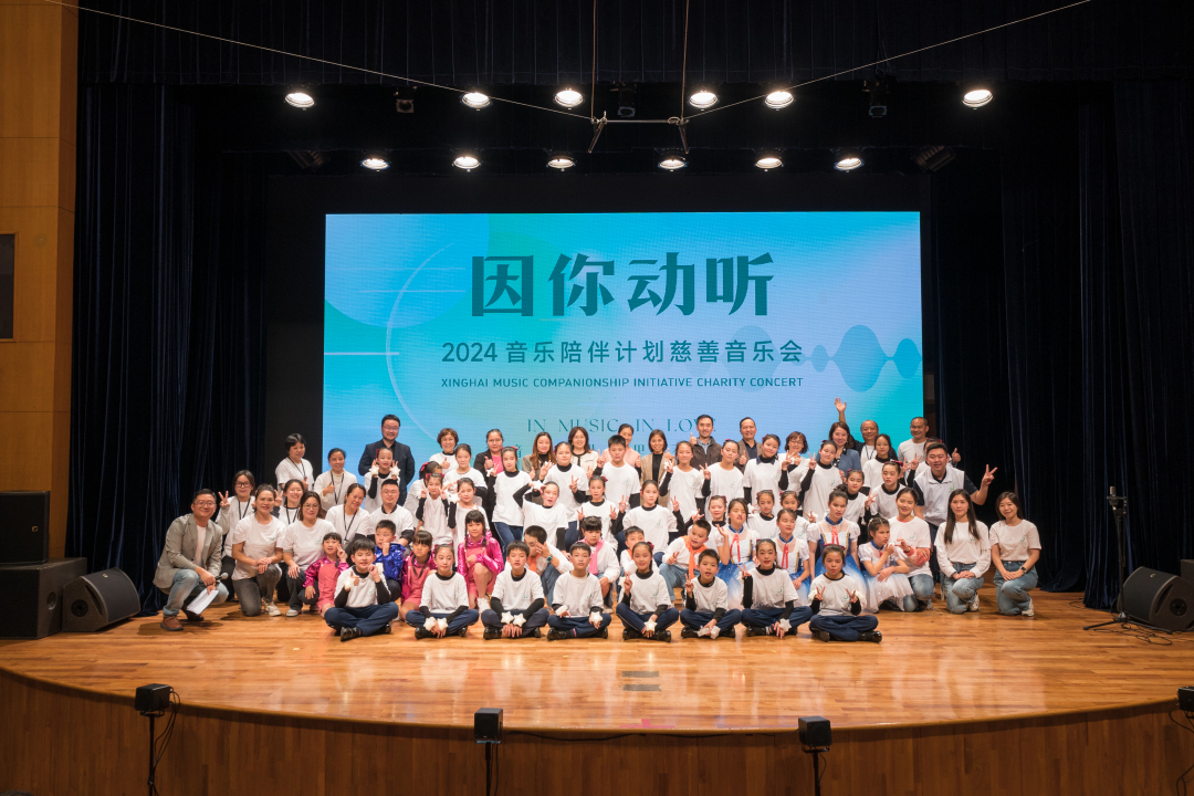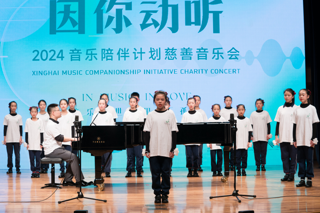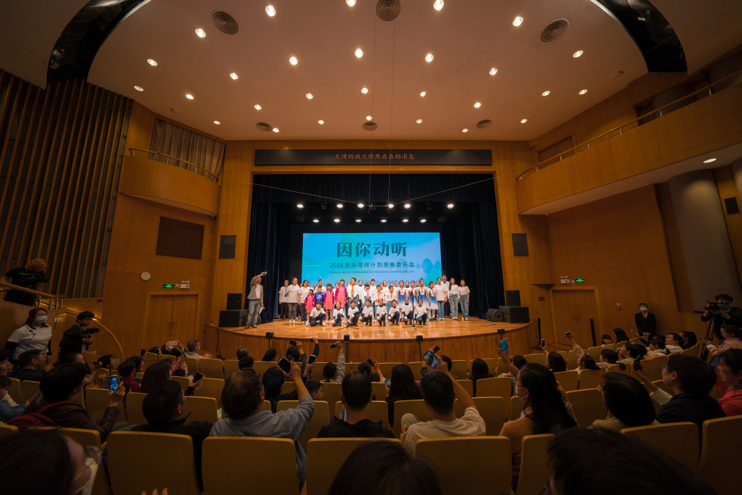 这是创立五周年的公益艺术项目“音乐陪伴计划”牵手四所定点结对学校共同呈现的2024“因你动听”慈善音乐会。参与演出的110多位师生分别来自:面向外来务工人员子女的广州市海珠区东风村第二小学、十五年一贯制公办特殊教育学校广州市南沙区启慧学校、广东省唯一一所纯招收视障学生的学校广州市启明学校,以及广东省创办最早的特殊教育学校之一广州市越秀区启智学校。