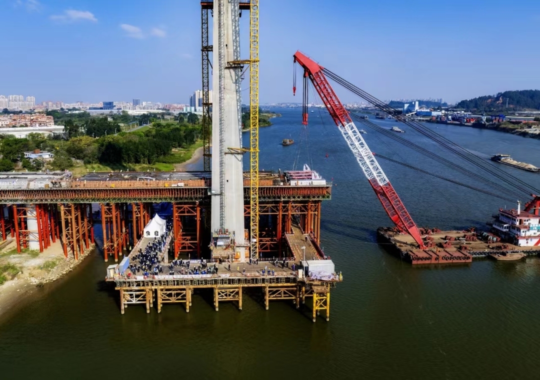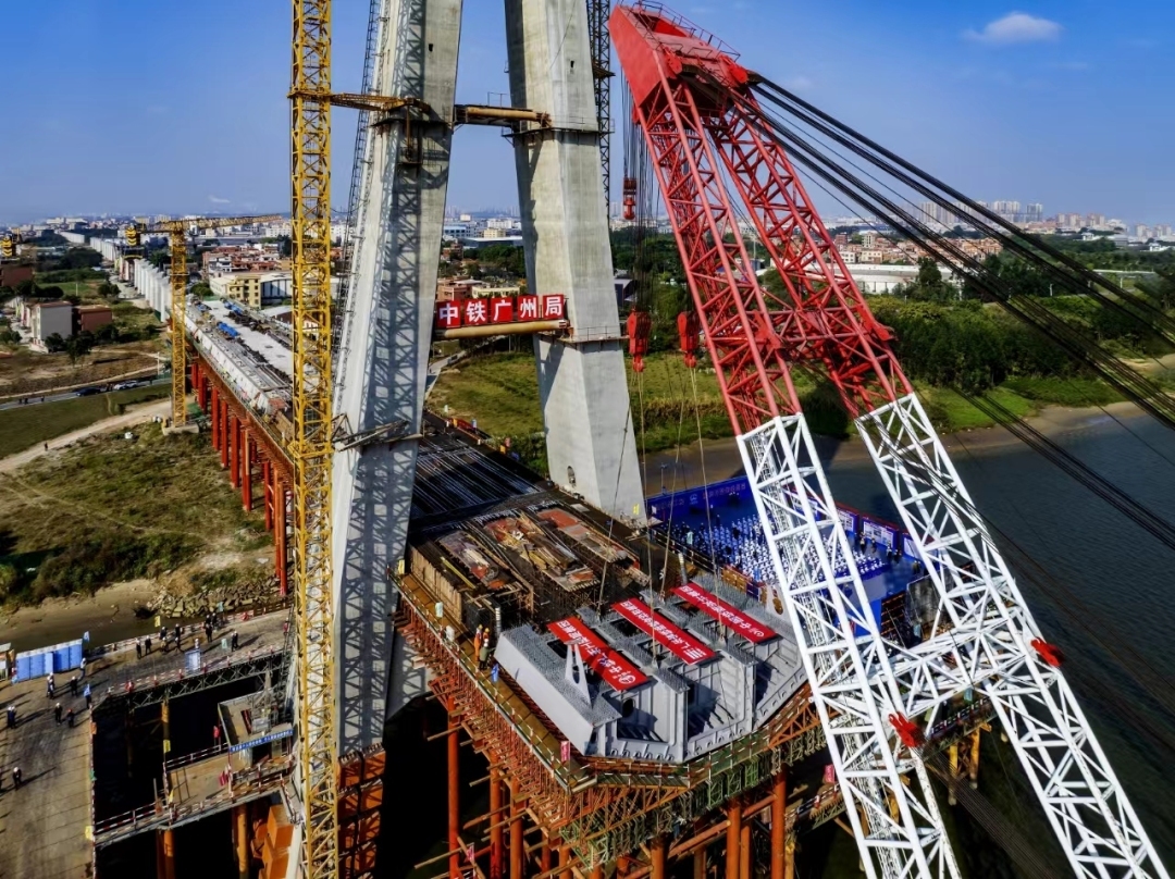 据中铁广州局集团广湛高铁项目负责人介绍,项目团队充分发挥科技攻关作用,先后攻克了西江深埋岩溶深水大直径超长桩基施工技术难题,西江深水急流大型双壁钢围堰施工难题,研发了“一种结合超长超重混凝土节段悬臂浇筑、钢混结合段吊装与混凝土浇筑、中跨大节段钢梁整体提升吊装”三位一体造桥装备,解决了东平水道砂岩地层哑铃承台组合式围堰施工技术难题和超长超宽节段边跨压重梁整体浇筑难题,开展了大跨无砟轨道桥梁线形技术保证攻关。