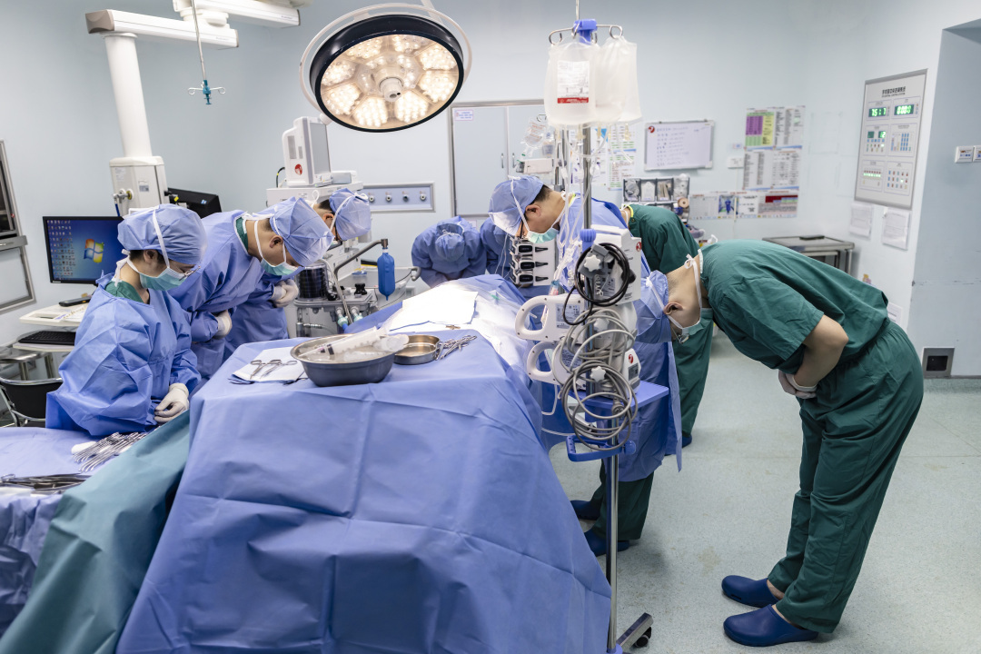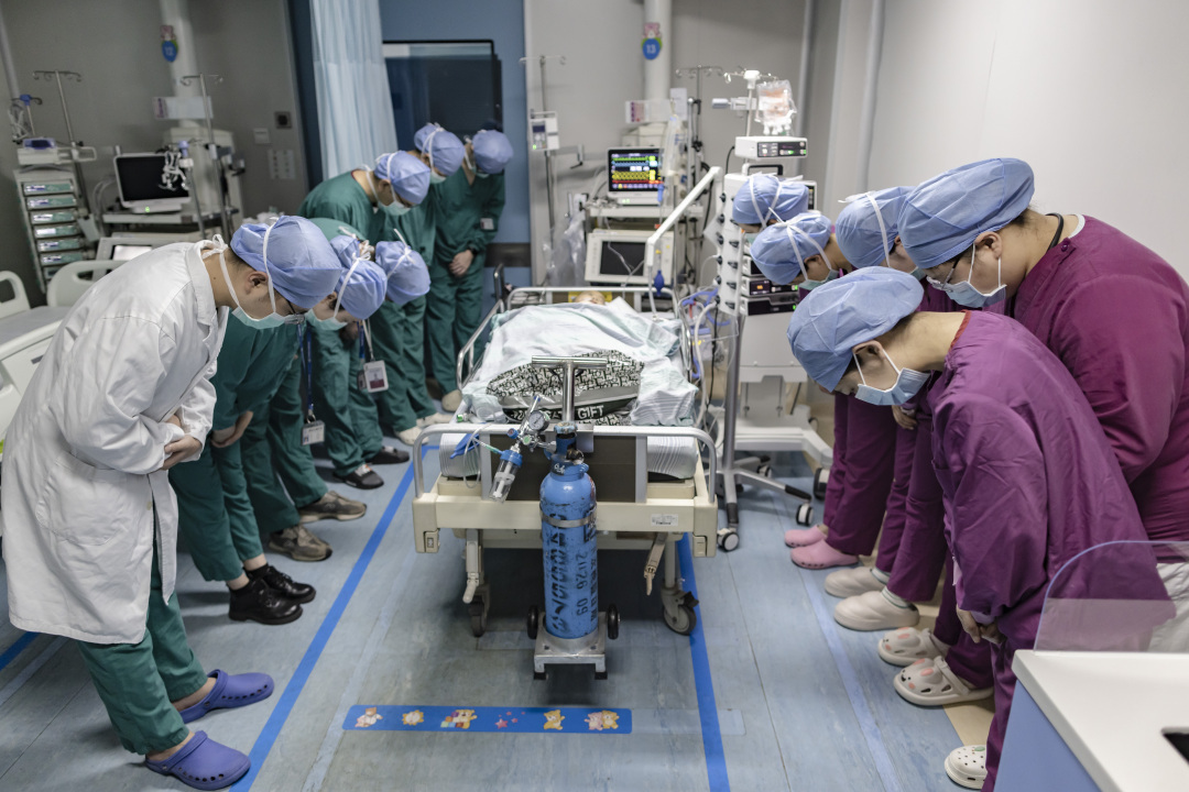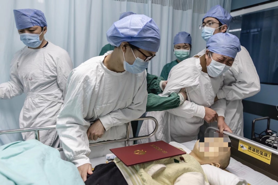 在溪溪临床死亡后及手术前,医务人员向她默哀致敬。