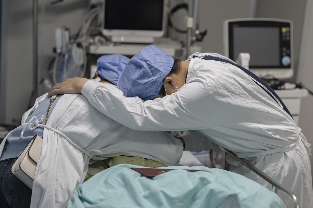 9:20左右,器官获取手术结束,到了最后告别的时刻。“溪溪,你听到爸爸妈妈说话吗?你不要怕。爸爸妈妈一直陪着你,好多人一直在这边陪着你。”爸爸在床边轻声说道。妈妈小心地掀开盖在溪溪身上的被单,上下端详着孩子小小的身躯,又一遍遍地摩挲着已经没有了血色的小手,似乎想让小手恢复些许温度。奶奶在一旁把花生、糖果一个劲地往溪溪的衣服口袋、裤袋里塞,塞到装不下还不想停下。那都是溪溪平时爱吃的零食。