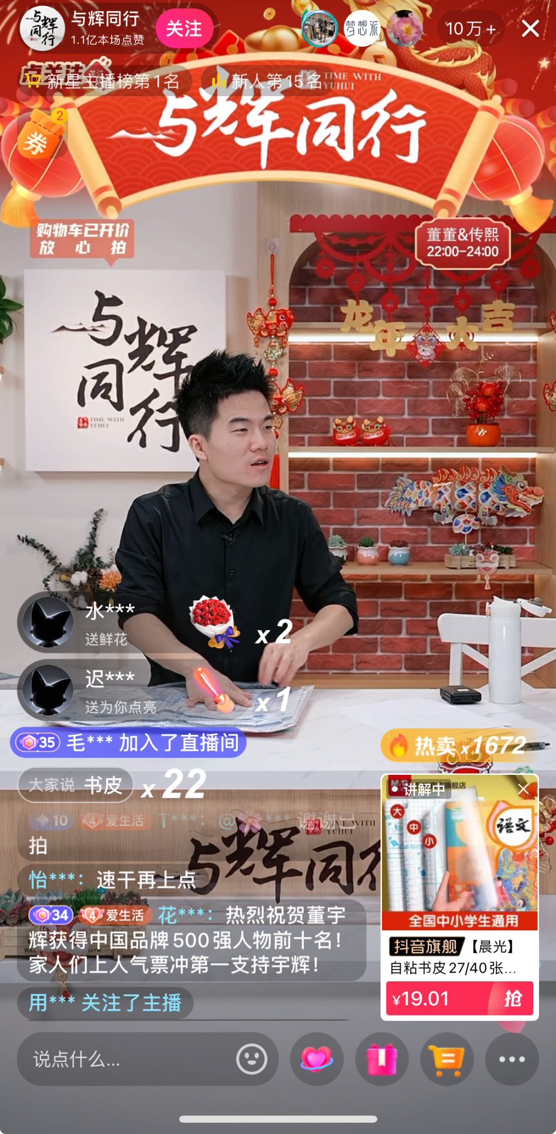 记者观察发现,“与辉同行”直播间销售产品非常丰富,不单有书籍杂志、学习用品,更有生鲜、零食特产、粮油调味等。“与辉同行”直播间开播以来,与主号“东方甄选”打起了擂台,并有超越“东方甄选”主号的势头。1月21日傍晚6点多,“东方甄选”跟“与辉同行”的抖音直播间同时在直播,数据上,其间,“东方甄选”直播间在线人数为1万,位于人气榜100+,而“与辉同行”直播间的在线人数达到6万,位于人气榜16位。21日当晚8点至10点董宇辉开播,至截稿时,“与辉同行”直播间,在线人数超10万,获赞超过1.1亿。第三方数据显示,1月9日,“与辉同行”首场直播GMV(商品交易总额)破亿。