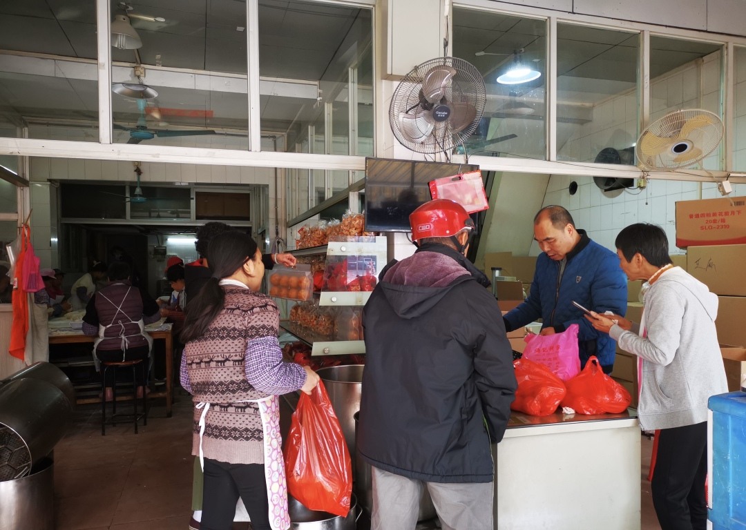 据饼店经营者介绍,近期每天都接到很多订单,再过几天来买煎堆就要排队了。在一些商场、超市,一包包的煎堆、酥角也摆上了货架,供顾客选购。