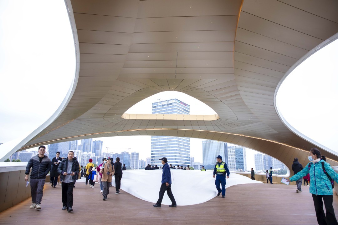 记者现场看到,聚星桥以简洁大气的白色为主,横跨蕉门河,连接蕉门河两岸和蕉门岛,桥上设计有三面开阔空间,蕉门河景色尽收眼底,且非常适合市民散步打卡拍照。“今天开通的聚星桥是我们去年3月份正式动工建设的,历经10个月正式建成。聚星桥开通后将联通创享湾与国际人才港,将青创平台、交流平台、法律服务平台、科创合作平台等汇聚一体,打造承载南沙港澳合作的集聚区,激发汇聚创新人才活力。”南沙区建设中心市政工程部部长谢意华介绍说,未来还将以聚星桥周边区域试点打造一个年轻时尚的“商业+公园”体系,计划引进一些轻餐饮和文化体育项目,把公园和城市更好地融合在一起。