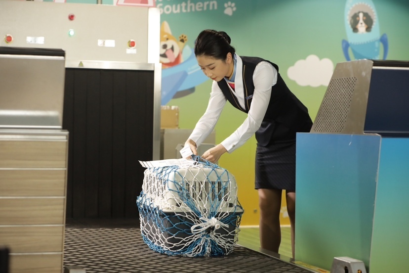 除了行李提取区域的“爱宠乐园”,南航在T2出发厅国内超规行李托运柜台升级改造了“爱宠驿站”,为携带爱宠出行的旅客提供宠物专属登机牌、免费宠物网兜发放、宠物收运等一站式服务。携带萌宠出行的旅客,可提前24小时通过南航App、小程序或95539服务热线等官方渠道预约,预约成功后于出行当天提前2小时抵达航站楼,携带符合规定的宠物航空箱及合格的小动物检验检疫证明,即可前往“爱宠驿站”办理宠物托运手续。