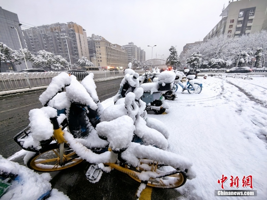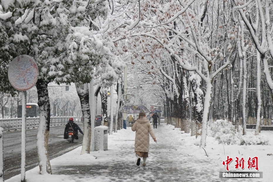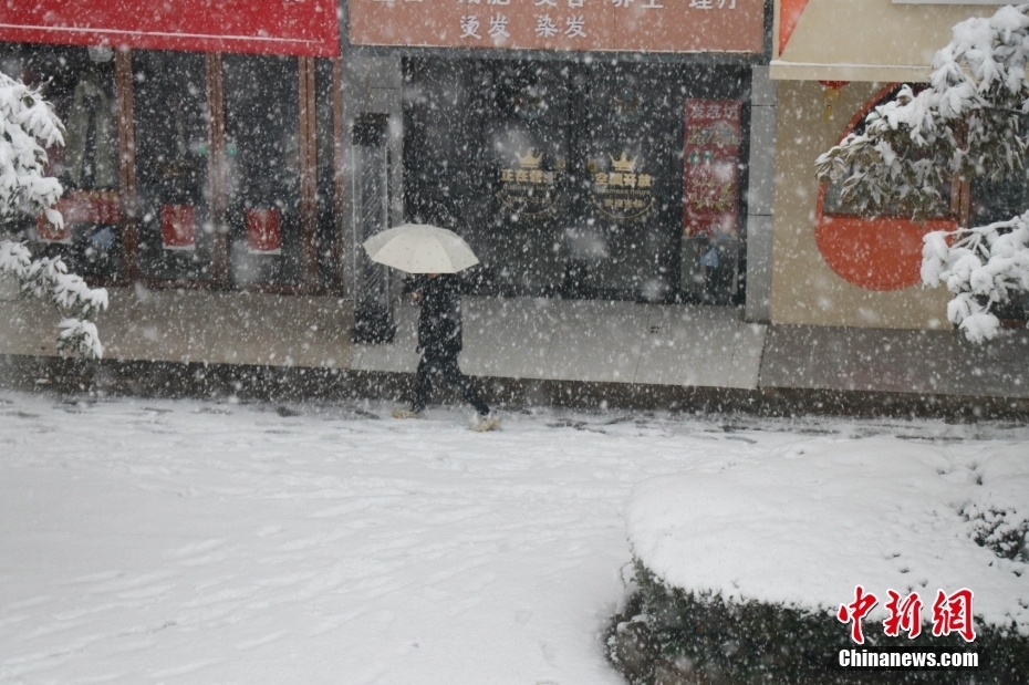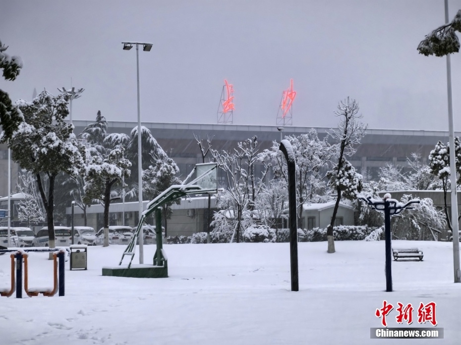 1月22日,湖南省长沙市迎来降雪,城区被白雪覆盖。