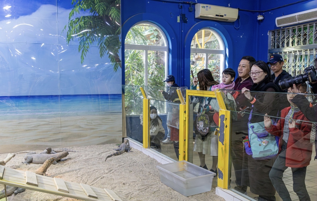 讲堂结束后,亲子家庭还到长隆野生动物世界动物幼儿园探访科莫多龙。这是一个温暖舒适的环境,大家看到科莫多龙干净整洁,在精心打造的环境中展示出了它们独特的生态特征,体形巨大的科莫多龙尾巴、爪子强大有力,皮肤粗糙,遍布全身的隆起鳞片似珍珠,“它们的爪子很锐利!”小朋友都惊叹道。
