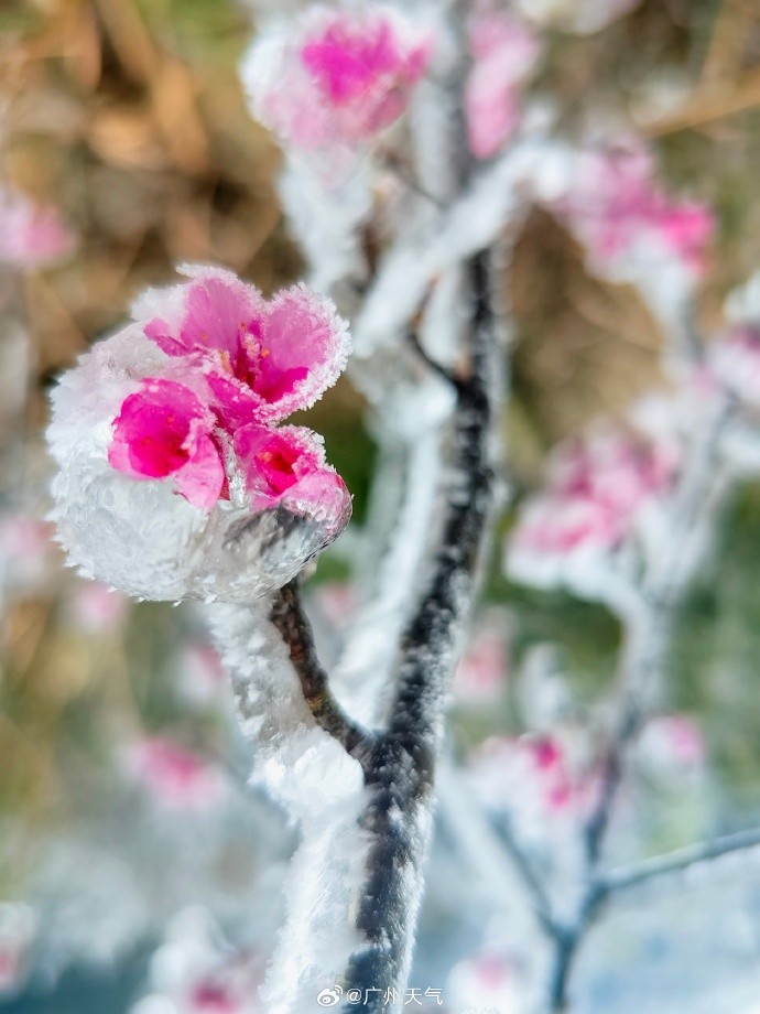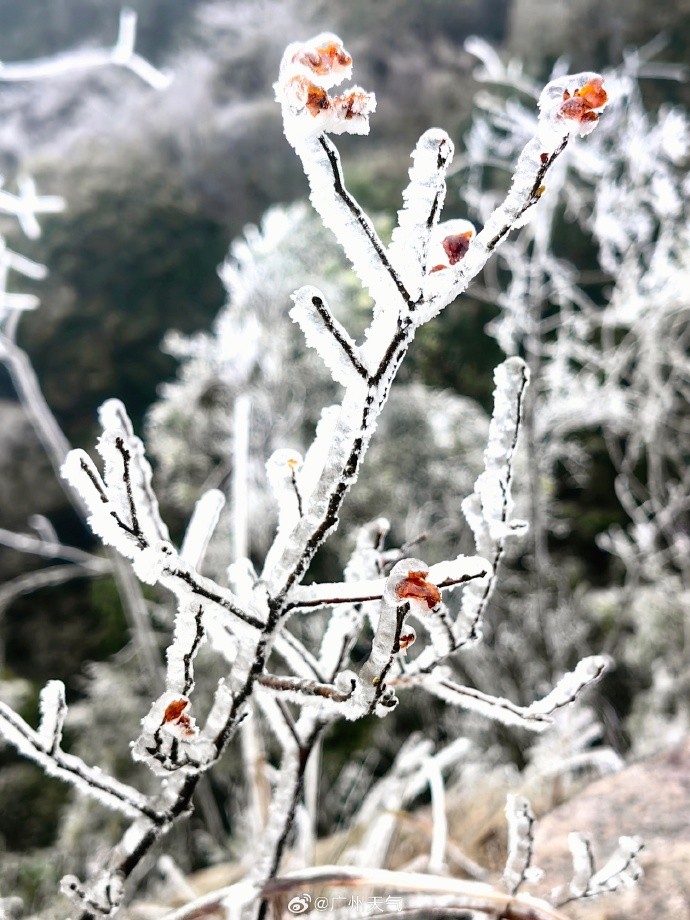 冷到挂冰!受强冷空气影响,今天广州从化五指山、帽峰山等高海拔地区出现了挂冰现象。至于广州市区,今天气温比北部山区要高一些,气象部门表示,“大家还是看看雨吧。”