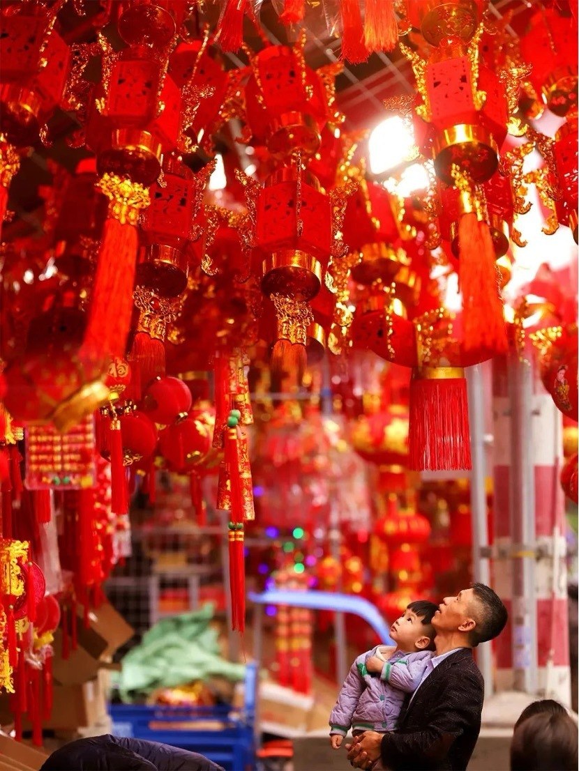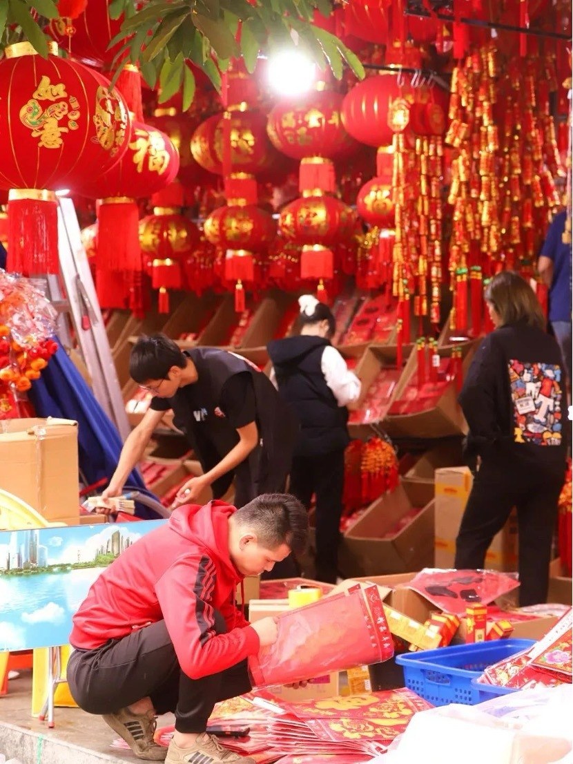 在荔城街新桥路“春联一条街”,已有不少市民开始选购新年装饰,整条街充满着过年的仪式感,新年饰物把店和街都映照得通红,店铺挂满了红灯笼,大大的福字,还有一沓沓的利是封,店铺里塞得满满当当,一片红红火火。