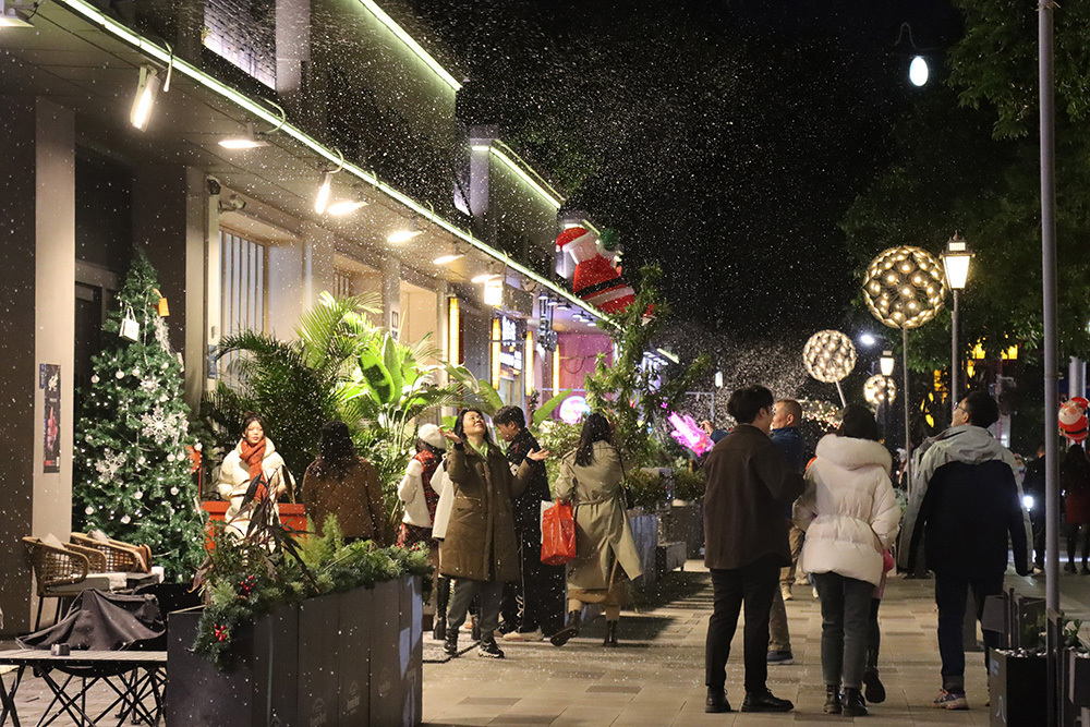 针对轻餐饮类的临街店铺业态特点,在不影响通行、不影响周边居民生活的前提下,以备案形式允许在有限度的外摆。对于大型商业体的外摆需求,城管部门指导其结合商圈氛围,以统一的美学风格,布置花箱、木架等划分外摆区域,摆放样式简洁大方的桌椅、遮阳伞,为商户拓宽经营空间,促进临街轻餐饮业态发展。