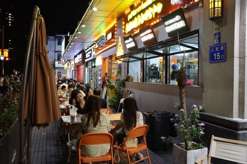 人民路南侧的青年文化特色街区临街商铺按照《划线指引》参与了划线外摆。在此街区某家茶饮店露天茶座享用水果茶的林女士表示,“Z时代”的年轻人追求个性消费,自己正是被这里的特色装饰吸引来打卡的,随意凹个造型就能轻松拍出氛围感“大片”,这里给忙忙碌碌的都市打工人营造了一个放松的空间,平时经常同朋友过来聚会聊天。