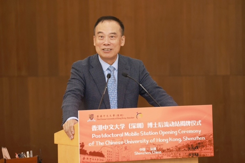 徐扬生校长代表大学对参会嘉宾表达了热烈欢迎。他表示,香港中文大学(深圳)的目标是建设一所立足中国、面向世界的一流研究型大学,博士后人才是研究型大学重要的科研力量。在深圳市人力资源和社会保障局的积极推动下,国家人力资源和社会保障部首次将中外合作办学高校纳入博士后流动站申请,港中大(深圳)成功获批了三个流动站,这对大学的发展是一个重要的里程碑。