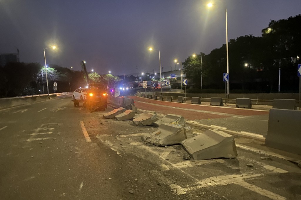 1月11日凌晨4时30分许,佛山市顺德区公安局交警大队容桂中队接报称,一辆大货车在顺德区碧桂路容桂段转弯时甩下钢管,砸倒中间近10米长的分隔带石墩;对向车道的两辆小汽车闪避不及,撞上石墩,导致车辆受损,所幸事故没有造成人员受伤。