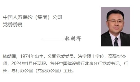 1月23日,中国人寿集团官网更新领导信息,林朝晖任中国人寿集团党委委员。