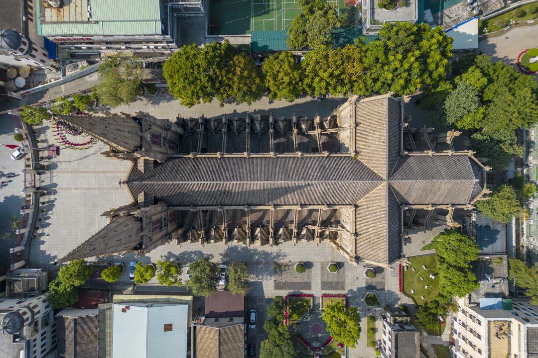一德路上的全国重点文物保护单位“石室”,是国内现存最宏伟的双尖塔哥特式建筑之一,有“远东巴黎圣母院”的美誉,也是全球四座全“石结构”哥特式教堂建筑之一。