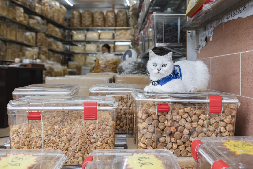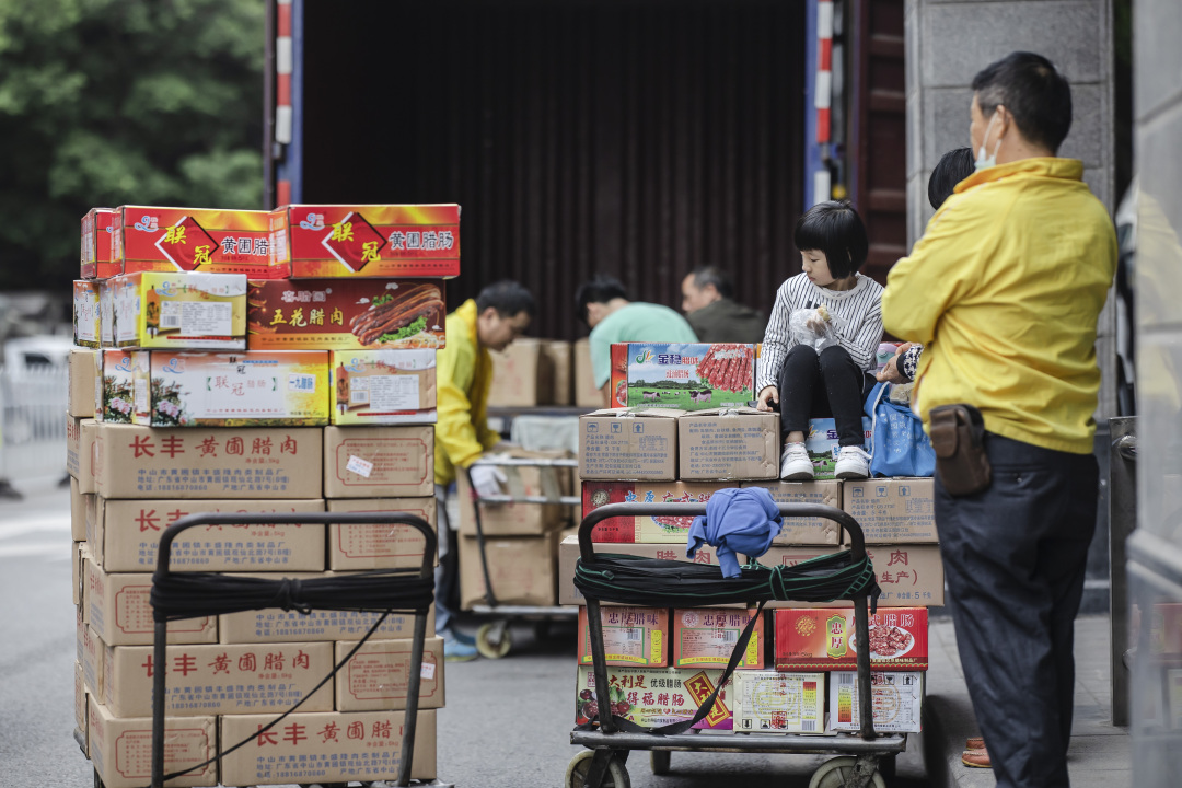 今天,海味干果仍是一德路的金字招牌。从长堤大马路拐往海珠南,进入一德路,向东走,山海城、海中宝……大型综合市场一个接一个,密密麻麻的海味店铺连内街小巷都不放过,满满当当的海味干货或摆在柜面上,或装在透明塑料袋里,悬挂于空中,供客商挑选,品种从“章犹地墨”到“鲍参燕”,能满足你对海味的所有想象。手推车运载着大包小包的干货,发出“哐啷哐啷”的声音,档口谈生意的人都不得不提高嗓门。一辆辆小推车构筑了一德路货如轮转的血脉,支撑着这里的贸易王国。