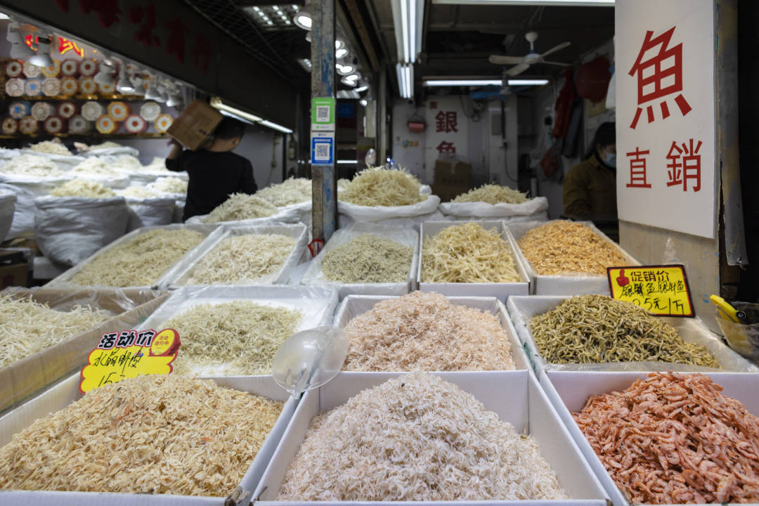 行走在一德路骑楼街,阵阵腥味扑面而来,有些人或许难以接受,但老广却说“有腥气”就是“有生机”,也是有生意、有财气的好意头。