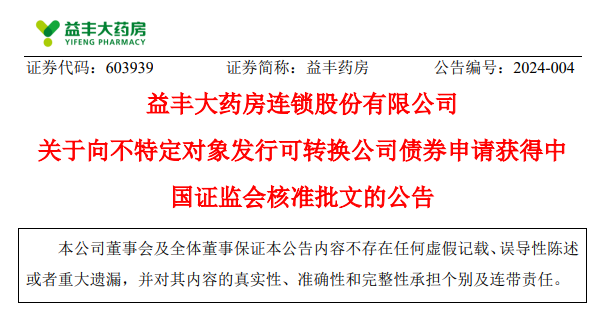 益丰募资计划正式通过,即将新开3900家直营门店,为期3年。昨日,益丰发布公告称,公司收到中国证监会出具的《关于同意益丰大药房连锁股份有限公司向不特定对象发行可转换公司债券注册的批复》。这意味益丰之前的“25.47亿元募资计划”正式通过,其发展步伐进一步加快。