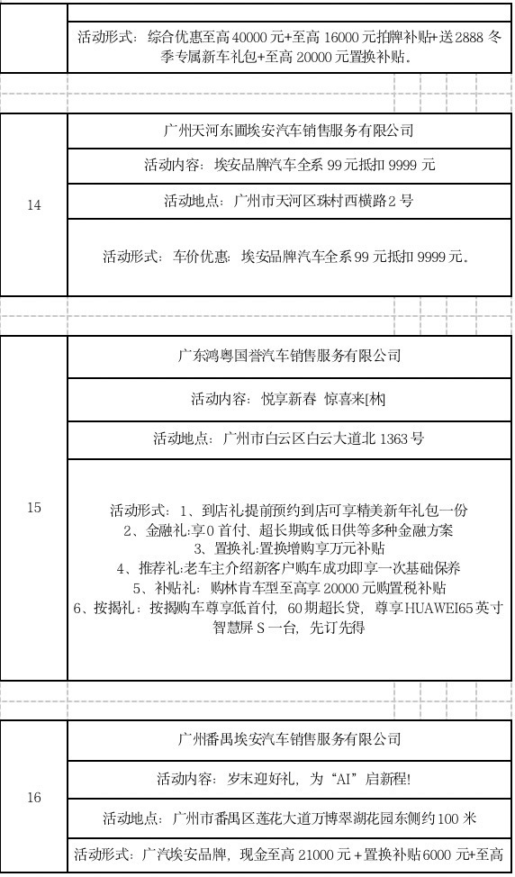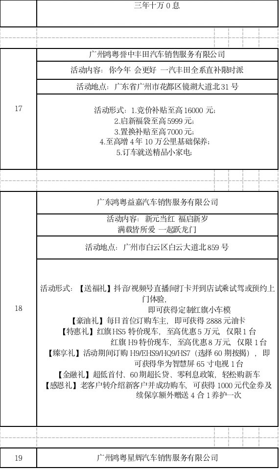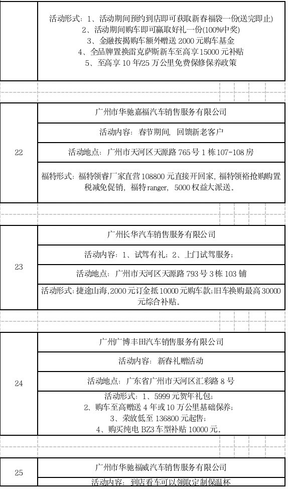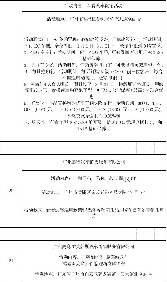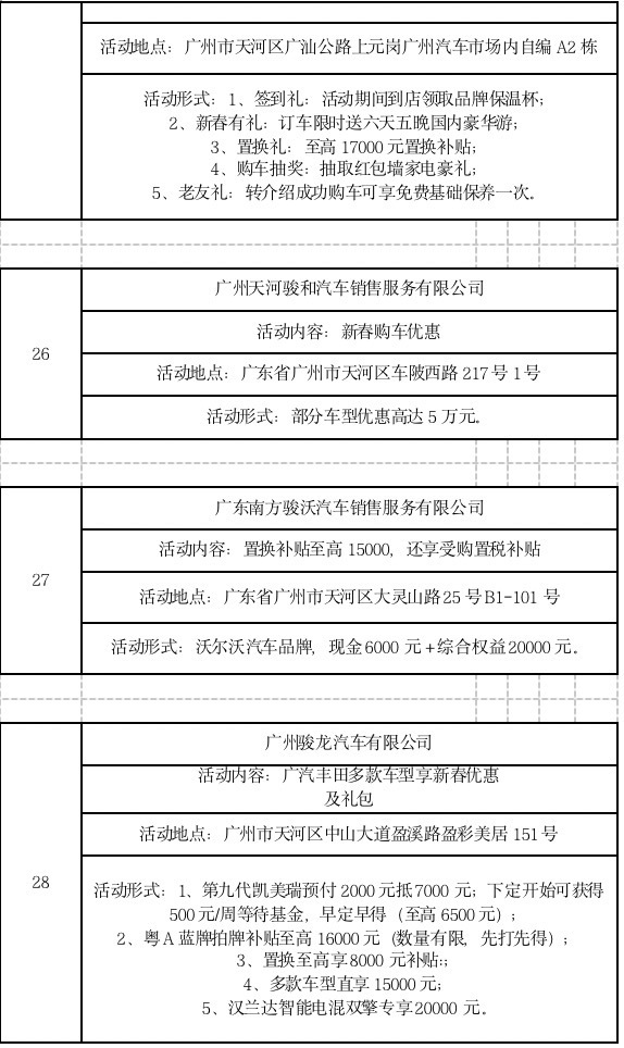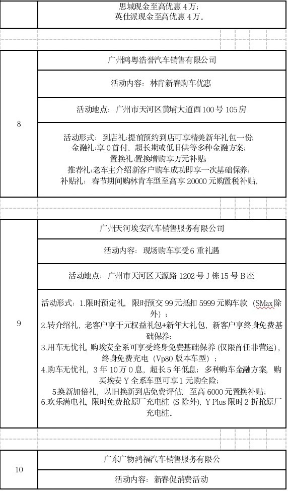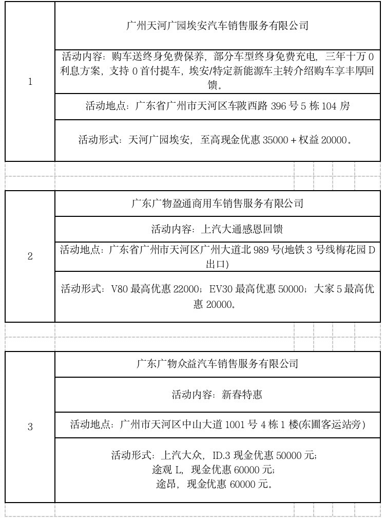 此外,广大商家也结合“粤享购车 新春有礼”汽车消费专项活动,推出各具特色的优惠活动。(以下优惠活动为企业自身优惠活动,不完全适用于所有门店,最终以门店实际优惠为准。)