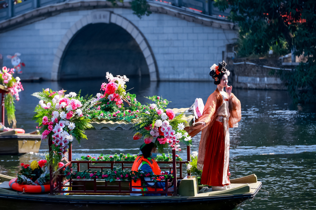 2月6日至9日,荔湾花市将在荔湾路热闹开市,传统水上花市也在西关永庆坊旅游区内的荔湾湖公园举办。盛装打扮的西关小姐、广东广播电视明星主播打卡团,都将乘着结合岭南花卉、广府文化和龙年主题的12艘特色花船在荔湾湖上巡游赏春色、与游人合影。隐匿在公园的泮塘五约、游人如织的亲水平台和廊桥旁的3号码头,将化身花市“网红打卡点”,分别结合五六米直径的大桃花树、穿梭的卖花船、四艘仿古花坊分别打造巨型艺术花卉装置等迎春场景,静待市民游客打卡观光。