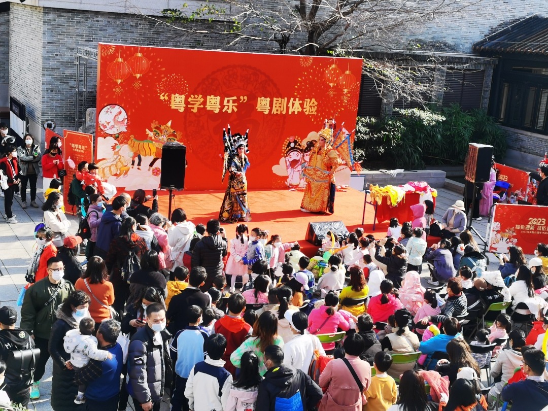 粤剧艺术博物馆周围,广大市民游客可以穿梭于新春习俗场景之间,共同沉浸于谢灶、送满福等广府春俗氛围之中;舞狮、舞龙、杂技、传统乐器、民俗情景剧、粤剧快闪等传统艺术连番上演,向市民游客展示岭南传统民俗的魅力。