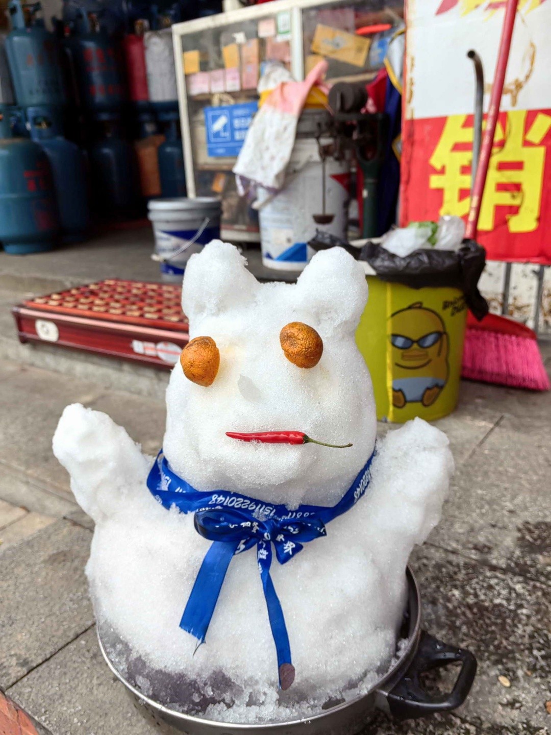 2024年的第一场雪让乐昌市坪石镇的“老孩子”“大孩子”小孩子一起来了一场雪人创意大“pk”。不同年龄段的人们各显身手,乐在其中。街头巷角、房前屋后随处可见的雪人,给粤北寒冷的冬天增加了无限色彩。