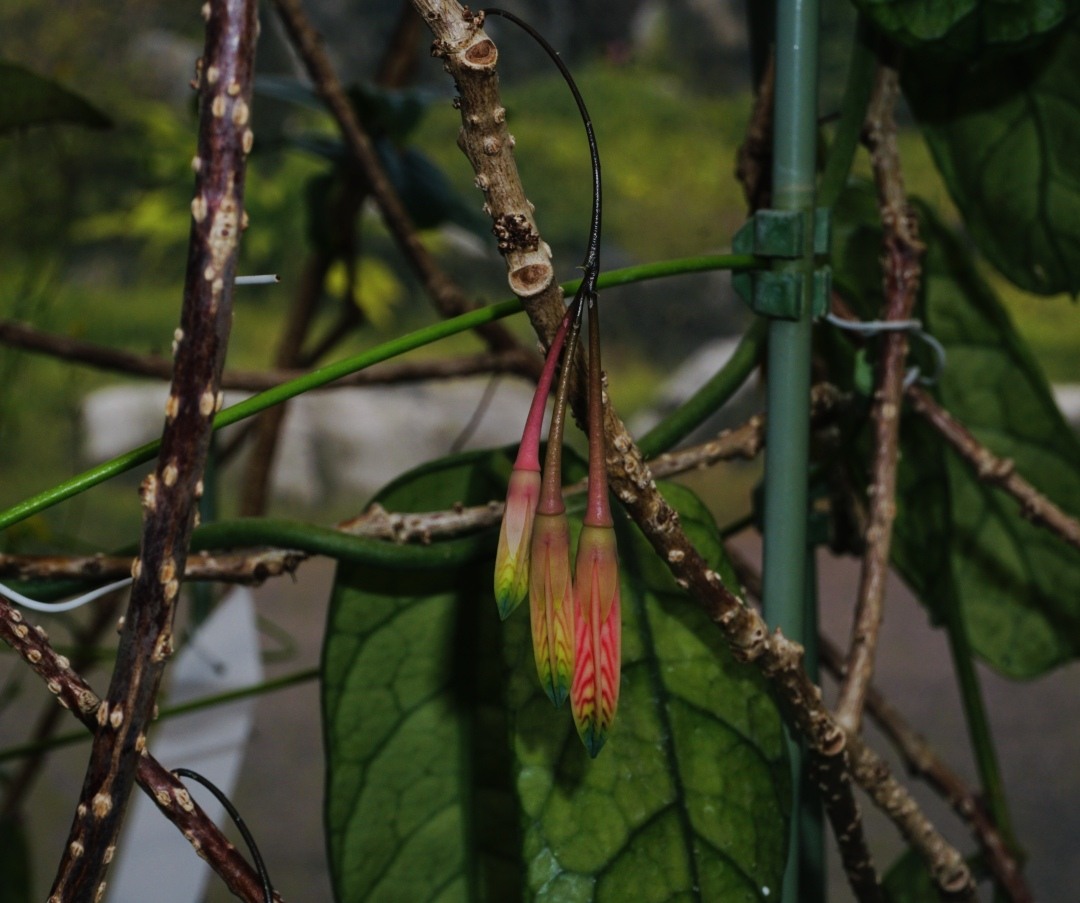 记者近日从华南国家植物园获悉,园内温室群景区-高山植物室内近无柄树萝卜正值花期。走近可见,其花朵一串串挂在枝条上,娇羞地下垂,花冠呈圆筒形。