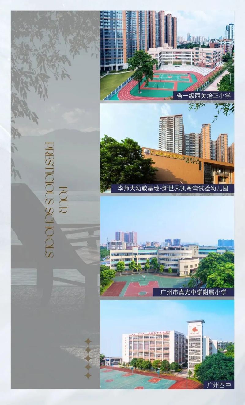 对关注教育资源的家长们而言,新世界凯粤湾家门口就有从幼儿园到中学的全龄名校教育配套,华师大幼教基地新世界凯粤湾实验幼儿园、西关培正小学(省一级)、广州市第四中学(省一级)和真光中英文附属小学举步可达。长期联动省级艺文机构、K11制造高质量文化与艺术第三课堂,也是众多菁英选择定居新世界凯粤湾的理由之一。