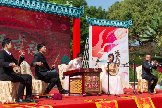 蕴含岭南水乡气息的广东音乐文艺汇演,设置“爬金山大奖赛”“幸运锦鲤”“幸福沙包”等游戏互动,为游客奉上一场新春文旅“盛宴”;在举办“大展鸿桃”桃花展的同时,推出“大展鸿桃”盛宴、番禺传统美食“扒金山”“盆满钵满”系列贺年盆菜等蕴含番禺岭南年味的特色美食,吸引游客竞相品尝,赏花赏味两不误;莲花山“莲峰十景”正式发布,荟萃国家、省、市级文保单位和岭南水乡优越生态胜景,进一步讲好莲花山故事,助力番禺区塑造全域旅游品牌形象。