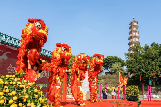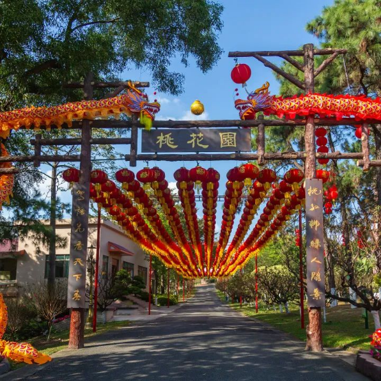 广州莲花山旅游区本届新春桃花文旅节传承岭南地区“龙狮贺岁”年俗,届时非遗贺年节目《莲峰狮啸》将精彩上演,金龙欢腾、醒狮劲舞;景区处处张灯结彩年味浓,设置“瑞龙迎春”“福到财到”“一‘网’情深”等多个幸福打卡点,市民游客齐聚莲花山共享“广府中国年”;景区、酒店新春惠民,推出“摣金搲银行大运”“派福袋送福米”“新春祝福贺年礼扎”等活动,充分展现岭南新春民俗文化;
