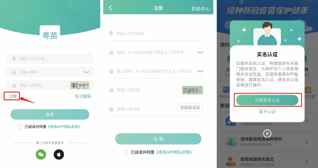 “粤苗”APP下载、注册方法及疫苗预约流程: