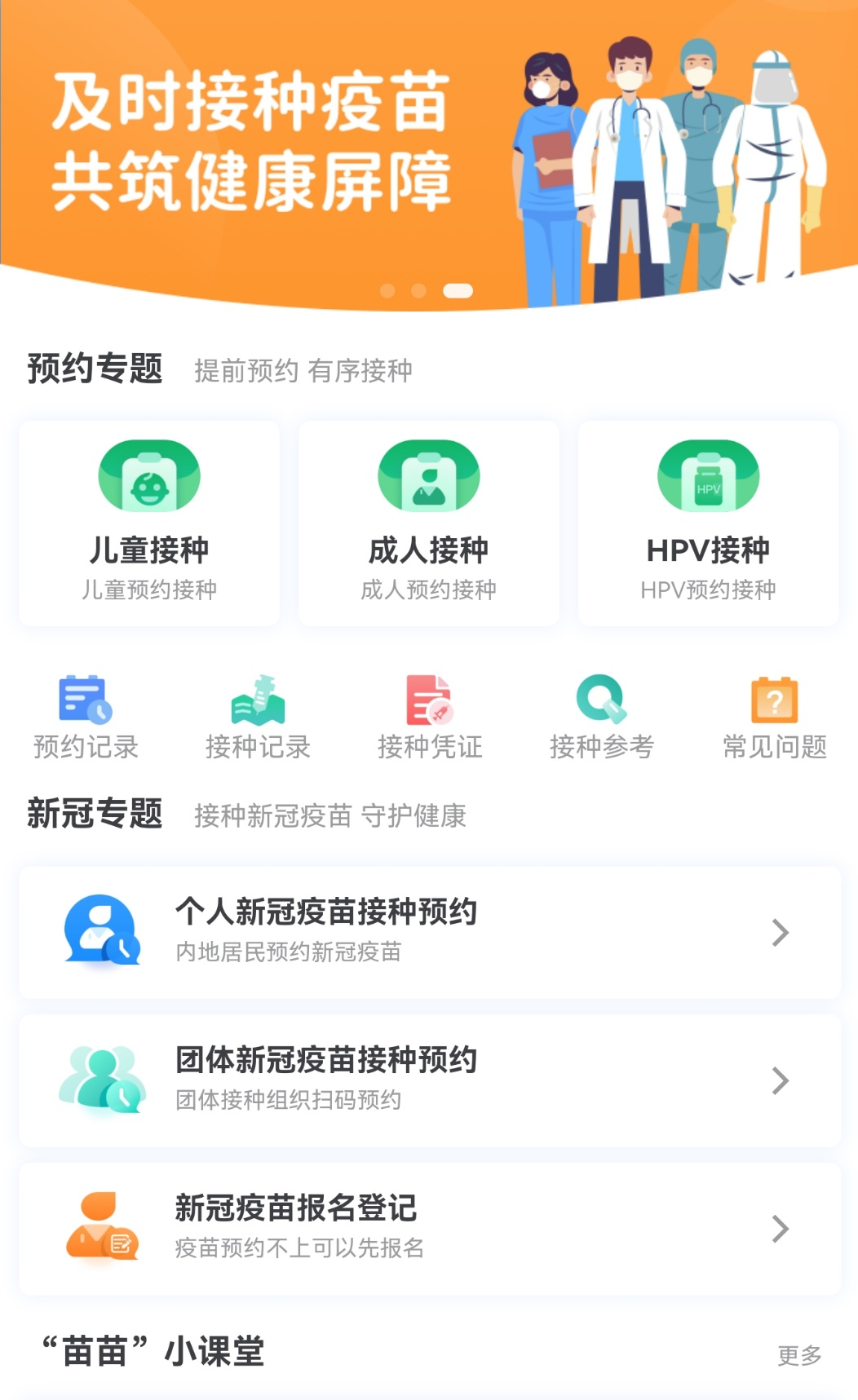 目前,南沙区内所有的预防接种门诊均已上线官方指定的“粤苗”APP开展疫苗接种预约,并开放全人群(儿童、成人)疫苗接种预约,号源充足。