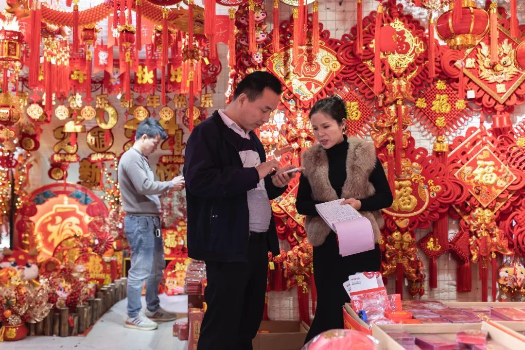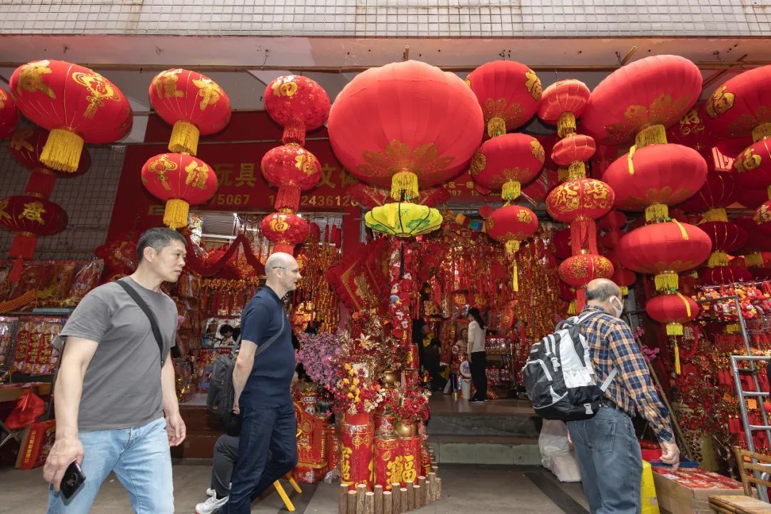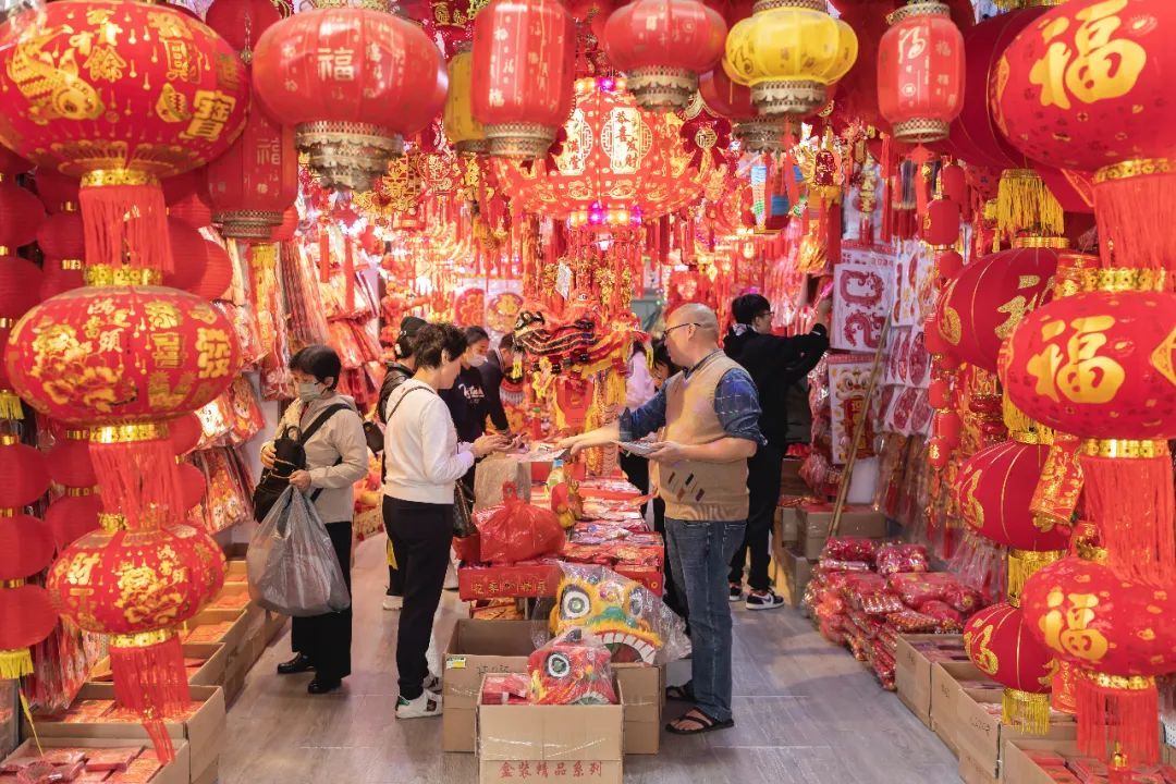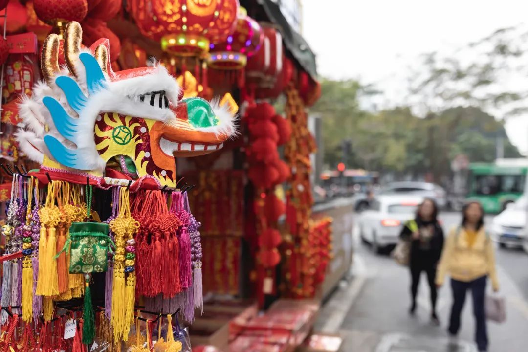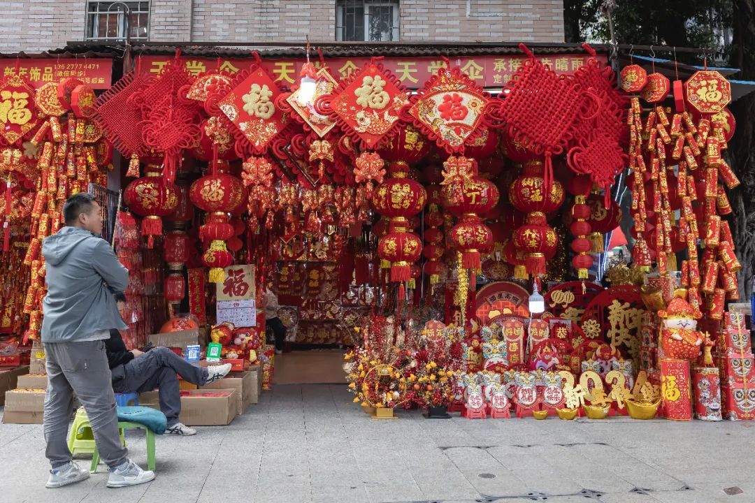 ▲距离2024年龙年春节还有不到一个月的时间,广州市一德路年货一条街红红火火,龙年贺岁商品已经上新,直接把过年气氛值拉满。