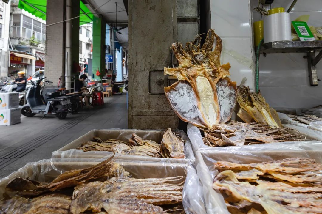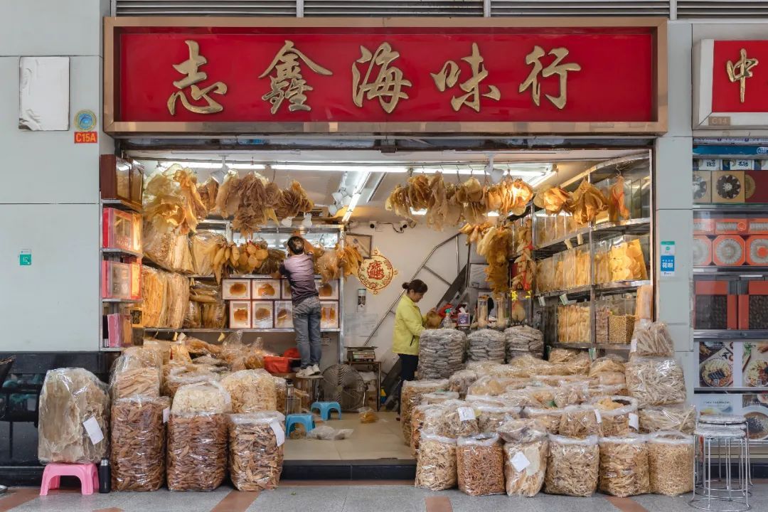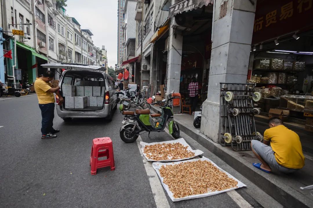 海味干果商店分布的路段,主要集中在一德中路段。上世纪80年代,这里几乎日日都在上演一夜致富的传奇。鲍参燕翅、章鱿地墨、黄花木耳、绿豆芝麻,就这些或名贵或价廉的海味干货,成就了新中国的首批万元户,以及中国最大的海味干果批发市场。