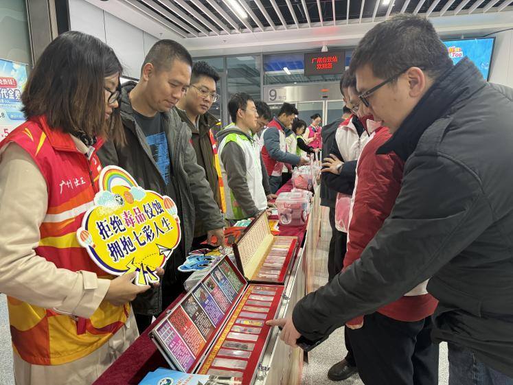 在活动现场,广州公交集团党员志愿服务队伍携手广州市客运交通管理处、广州综合交通枢纽发展有限公司、广东广播电视台羊城交通广播电台、广州白云山中一奇星药业有限公司、越秀区东山街道禁毒办、广州市越秀区青创力社会发展中心、广州市手拉手志愿服务促进会等共建单位,在白云站一楼候乘大厅,以摊位形式为出行旅客提供线路导乘、爱心帮扶、暖心物资、科普互动等“8+N”系列特色志愿服务。