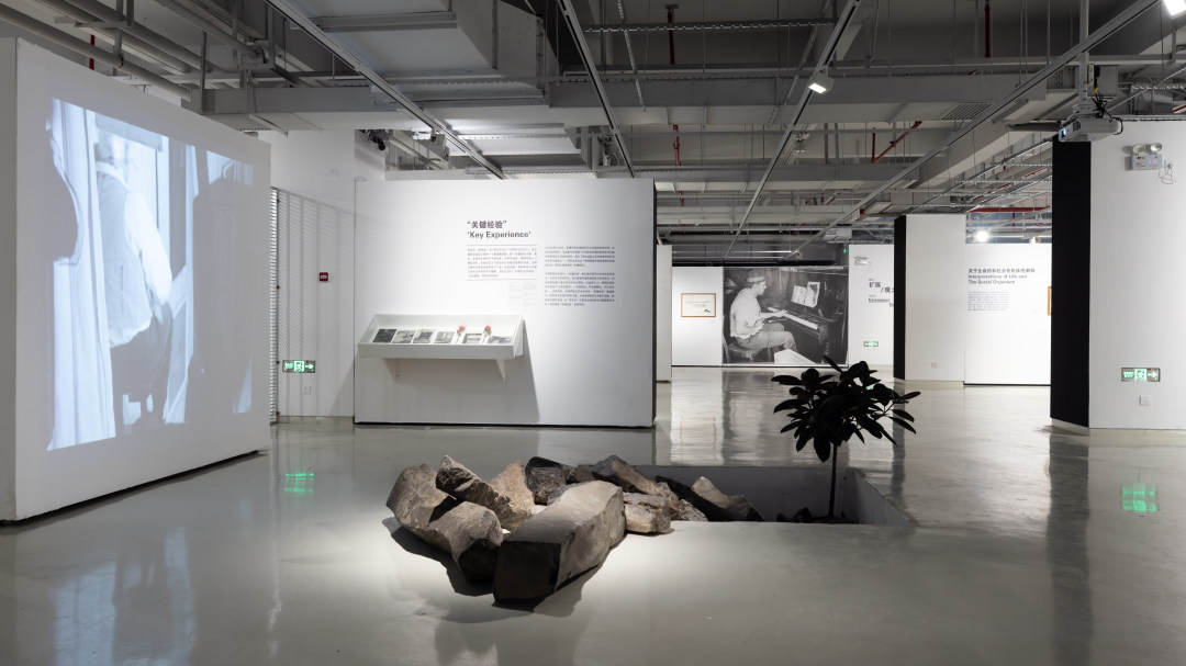 展览场景设计,以广州的建筑石料和常见绿化用树,呼应博伊斯在第七届卡塞尔文献展上的“7000棵橡树”生态艺术项目。