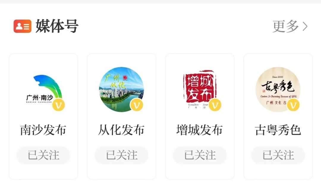 广州各区融媒号、广州日报大V号、全城热门推荐号……名记大咖轮番上阵。提供最有内涵的广州资讯,作出最解渴的热点分析,让大家足不出户就了解广州正在发生的新鲜事、热话题。率先进驻的大V古粤秀色,将娓娓道来,带大家深度了解广州。