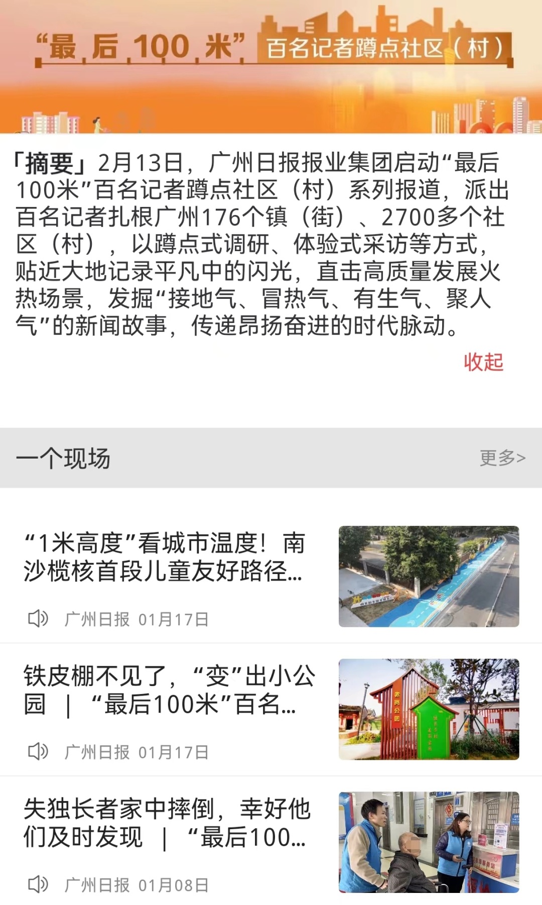 “最后100米”百名记者蹲点社区(村)全媒体系列报道也将重磅推出。报道贯穿全年,带你直击广州城市发展第一线。