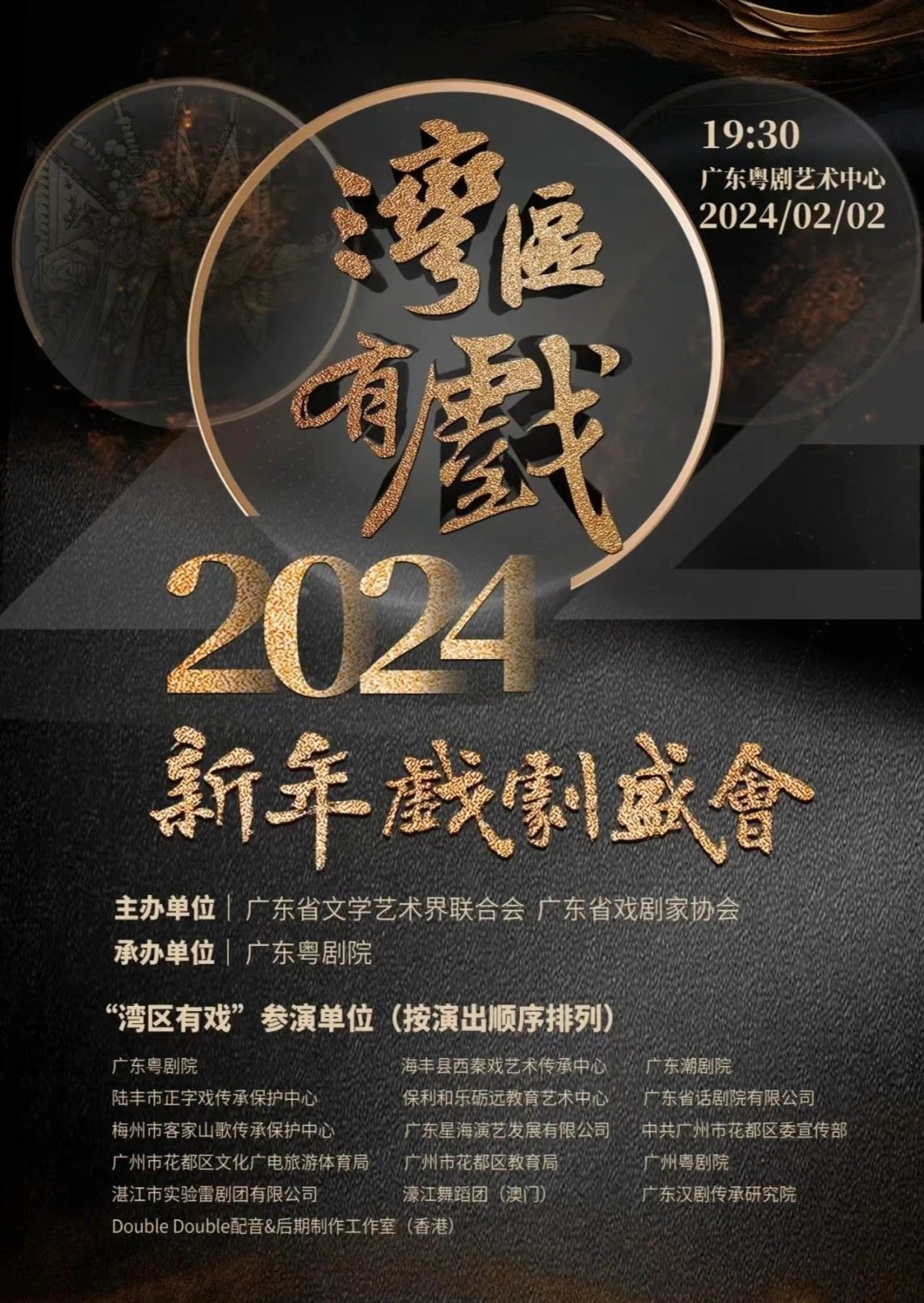 “湾区有戏” 2024新年戏剧盛会云集了粤剧、潮剧、广东汉剧、雷剧、山歌剧、西秦戏、正字戏、话剧、音乐剧等艺术领域的代表传承人以及优秀青年戏剧艺术家共襄盛宴,将以传承、融合、青春为主题,展现戏剧不同的艺术魅力,为观众呈现一场充满青春活力和时尚创意的演出。