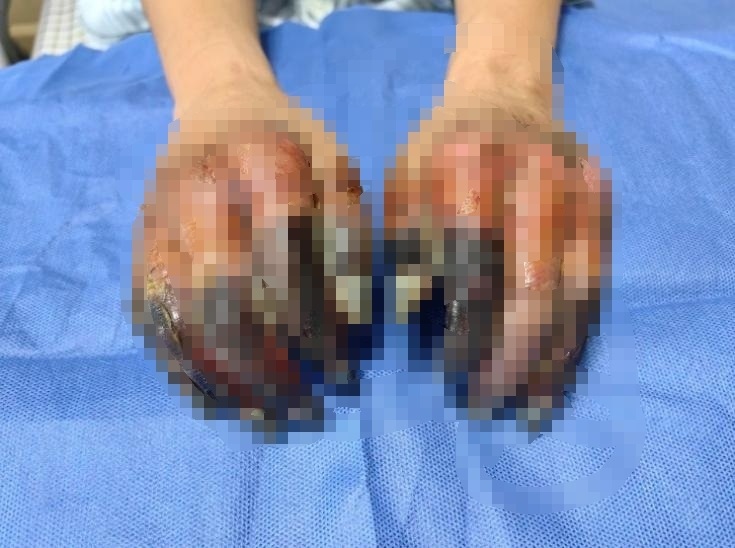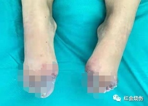 此前,广州市红十字会医院烧伤与创面修复科还收治了一例双足冻伤的患者小美(化名)。小美于零下15℃,攀爬海拔5276米的山峰,在山上逗留约12小时,下山后自觉脚趾冰冷,感觉缺失,洗澡时发现双脚趾皮肤呈紫色,立即予冻伤膏外涂并搓揉双足约一小时,随即入院寻求帮助。入院时,小美双足肿胀明显,脚趾皮肤呈黑褐色改变,感觉迟钝,面临截肢的风险。